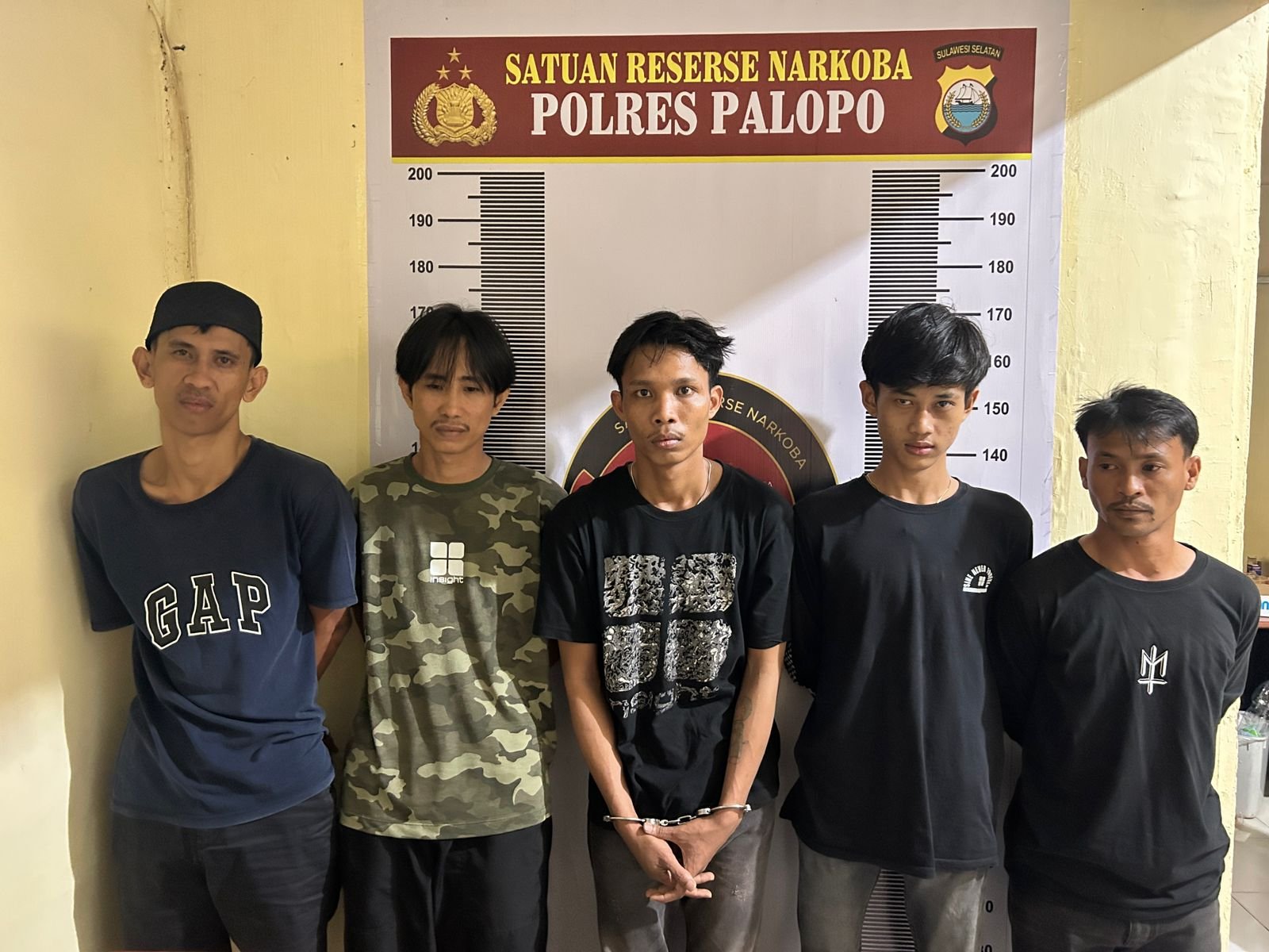 Lima pelaku penyalahgunaan narkotika jenis sabu diamankan di Mapolres Palopo. (dok: polres)