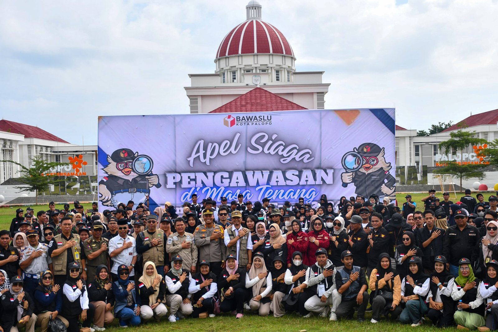 PALOPO, TEKAPE.co – Bawaslu Kota Palopo menggelar apel siaga pengawasan masa tenang pemilu 2024 yang diselenggarakan di lapangan Pancasila Kota Palopo, Sabtu (10/2/2024).