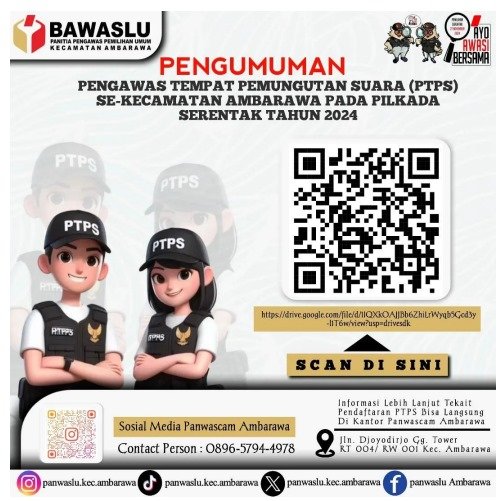 Menurut Suprondi, untuk melihat daftar namanama terpilih, silakan scan barcode kemudian dapat juga mengunjungi media sosial Panwaslu Kecamatan se-Kabupaten Pringsewu Sebagai Pengawas TPS, akan melaksanakan tugas yang mencakup: