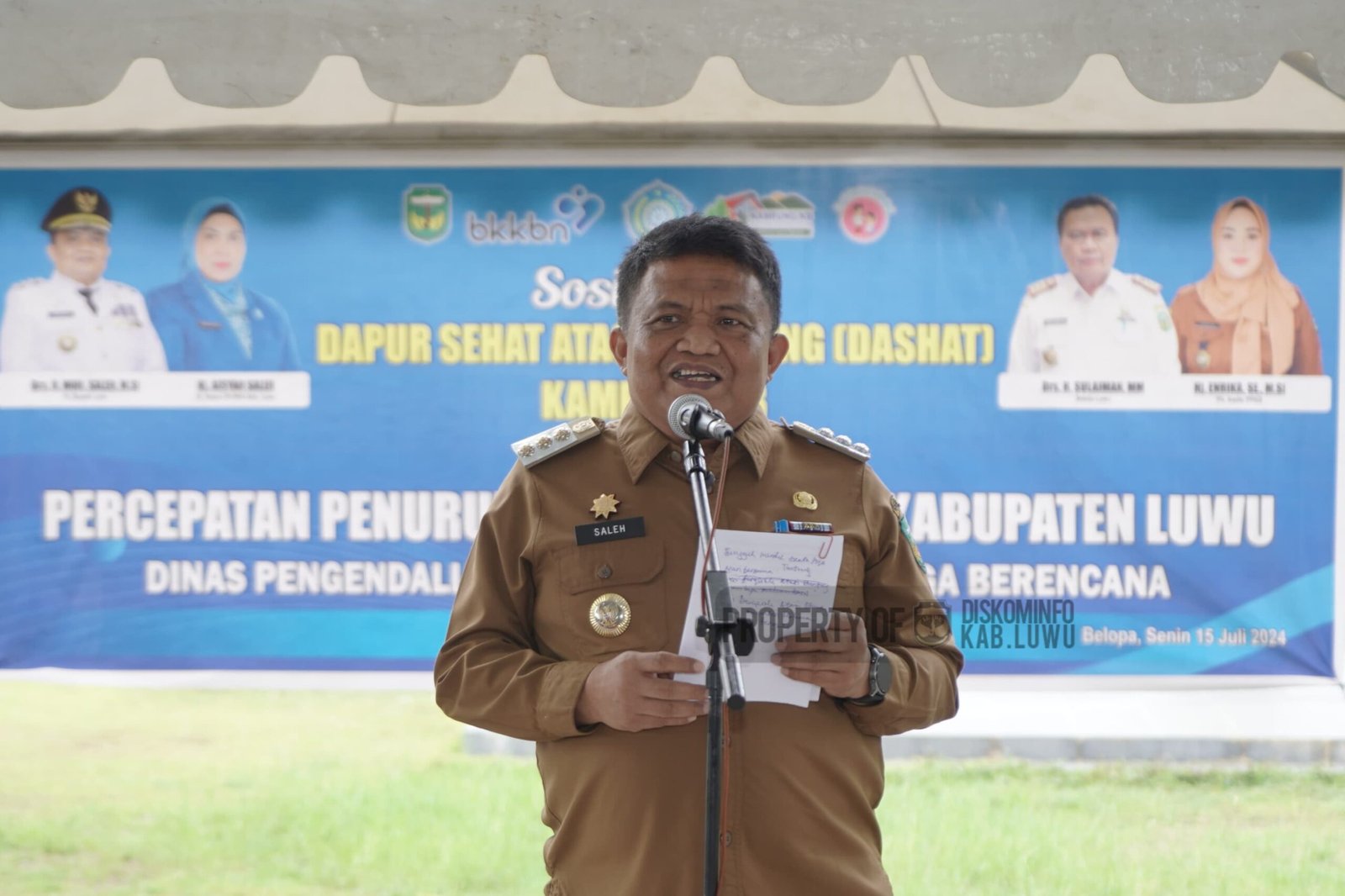 Hal ini disampaikan Pj. Bupati Luwu pada acara pembukaan Sosialisasi Dapur Sehat Atasi Stunting (Dashat) Kampung KB dalam rangka Percepatan Penurunan Stunting yang diselenggarakan oleh Dinas Pengendalian Penduduk dan Keluarga Berencana yang dipusatkan di Tribun Lapangan Andi Djemma Belopa, Senin , Kamis, 15 Juli 2024.