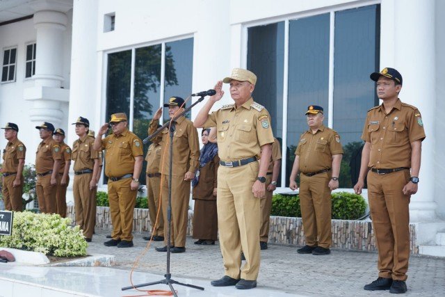 ASAHAN, TEKAPE.co – Bupati Asahan H. Surya BSc memimpin apel gabungan bulan November tahun 2023 di halaman kantor Bupati Asahan, Senin (06/11/2023).