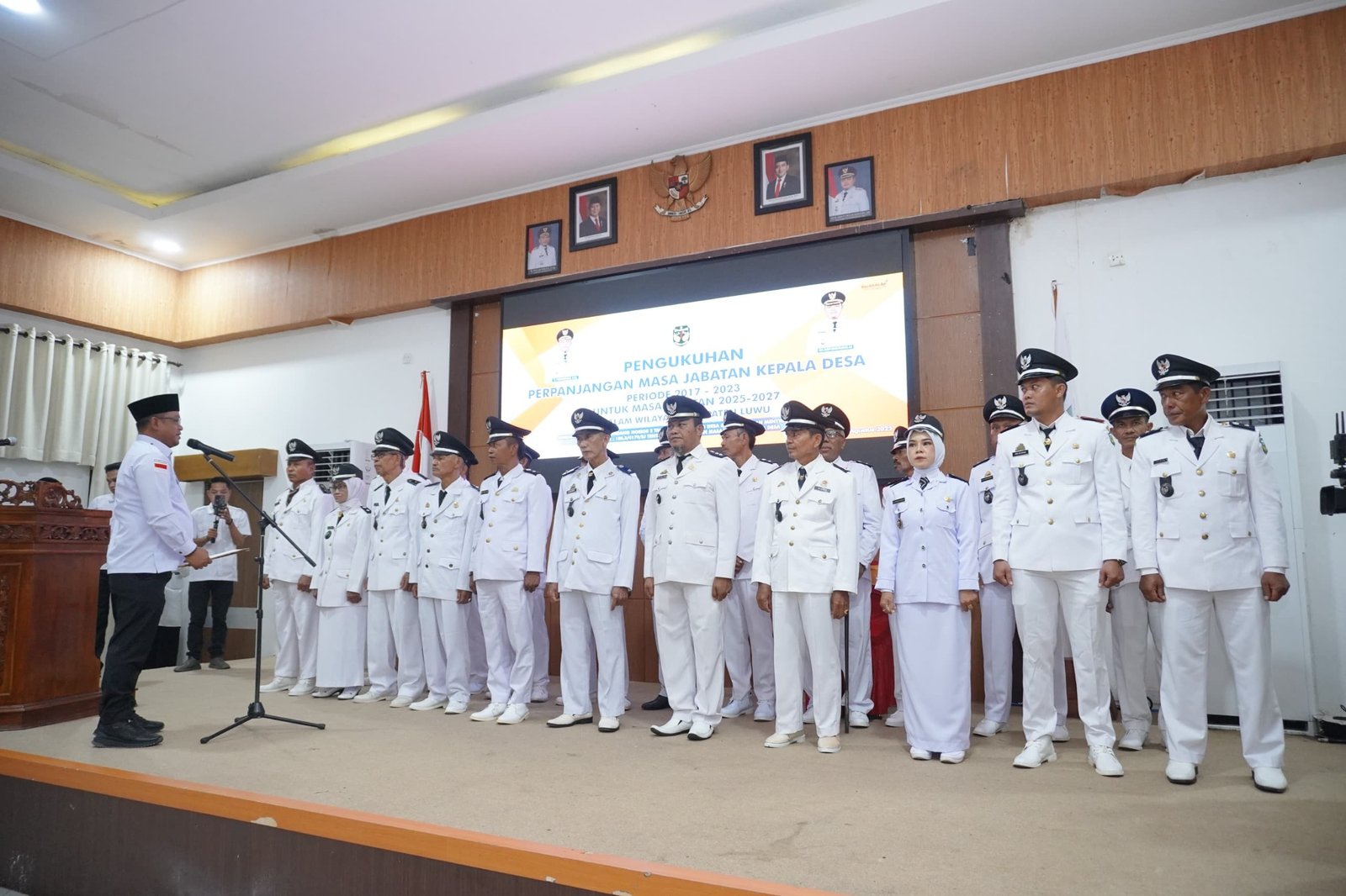 Bupati Luwu, H. Patahudding, memimpin pengukuhan perpanjangan masa jabatan 22 Kepala Desa periode 2025–2027 di Aula Rumah Jabatan Bupati Luwu, Rabu (20/8/2025). (ist)