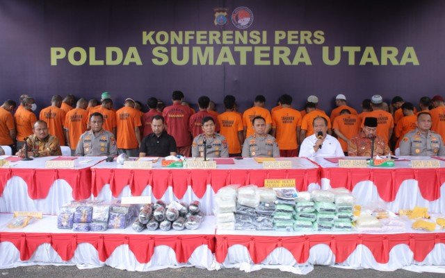 Sebelumnya Wakapolda Sumatera Utara Brigjen Pol Rony Samtana Tarigan menyampaikan pihaknya tidak pandang bulu untuk menindak peredaran narkotika di Sumatera Utara. Polda Sumatera Utara akan melakukan tindakan tegas dan terukur kepada para pelaku pengedar narkoba. Brigjen Pol Rony Samtana memaparkan pengungkapan narkoba dari 3 wilayah hukum yakni Kabupaten Asahan, Batubara dan Kota Tanjung Balai sungguh luar biasa dalam periode 1 Januari hingga 7 Mei 2025 yakni sebanyak 322 kasus dengan jumlah tersangka sebanyak 499 orang.(alam)