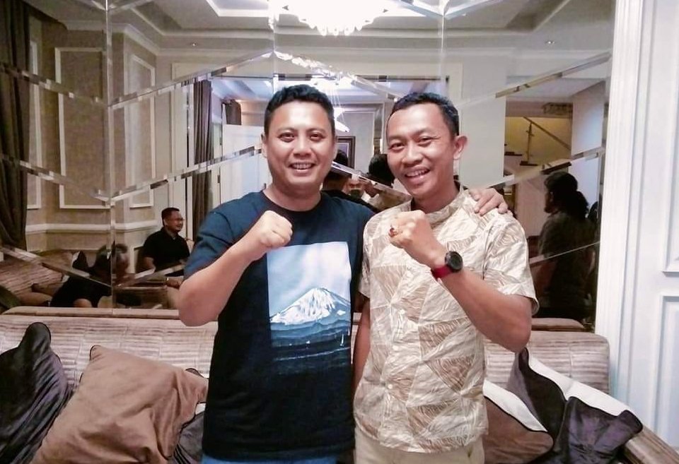 Salah satunya, Kepala Desa Wanasari, Kecamatan Angkona, Wayan Sardika terlihat berpose bersama Andi Iwan Darmawan Aras.