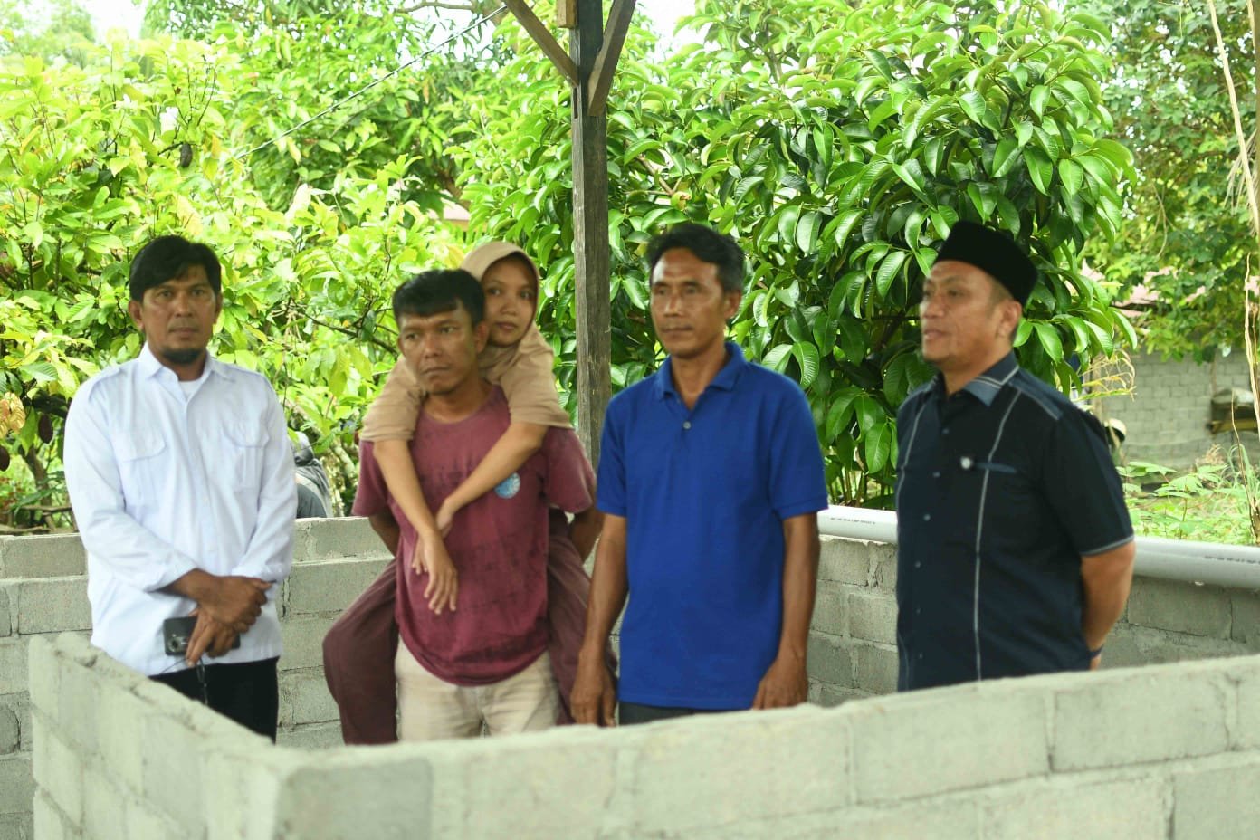 Bupati Luwu Timur, Irwan Bachri Syam (kanan), bersama Evi digendong sang suami, saat meninjau rumah Evi yang akan dibantu bupati untuk menyelesaikan pembangunannya, Minggu 1 Juni 2025. (ist)