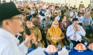 Iwan Lamaeto menyampaikan rasa bangga sekaligus apresiasi atas capaian Desa Sumber Makmur yang berhasil melunasi PBB sebesar Rp42.764.569 dari 1.443 lembar SPPT.