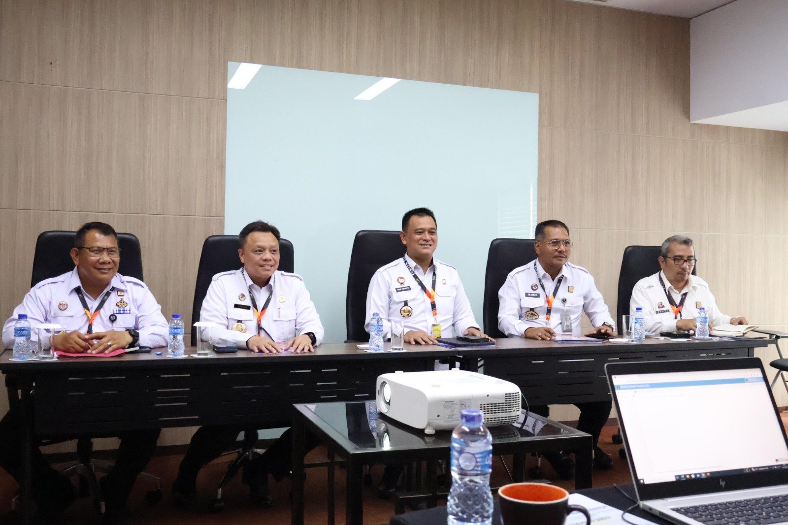 Kepala Kantor Wilayah, Romi Yudianto bersama Kepala Divisi Administrasi, Mamur Saputra, Kepala Divisi Pemasyarakatan, I Putu Murdiana, Kepala Divisi Keimigrasian, Barron Ichsan dan Kepala Divisi Pelayanan Hukum dan Hak Asasi Manusia, Alexander Palti dikumpulkan menjadi 1 ruangan guna dilakukan Evaluasi Kinerja Kantor Wilayah oleh Tim Evaluator Pimti Madya.
