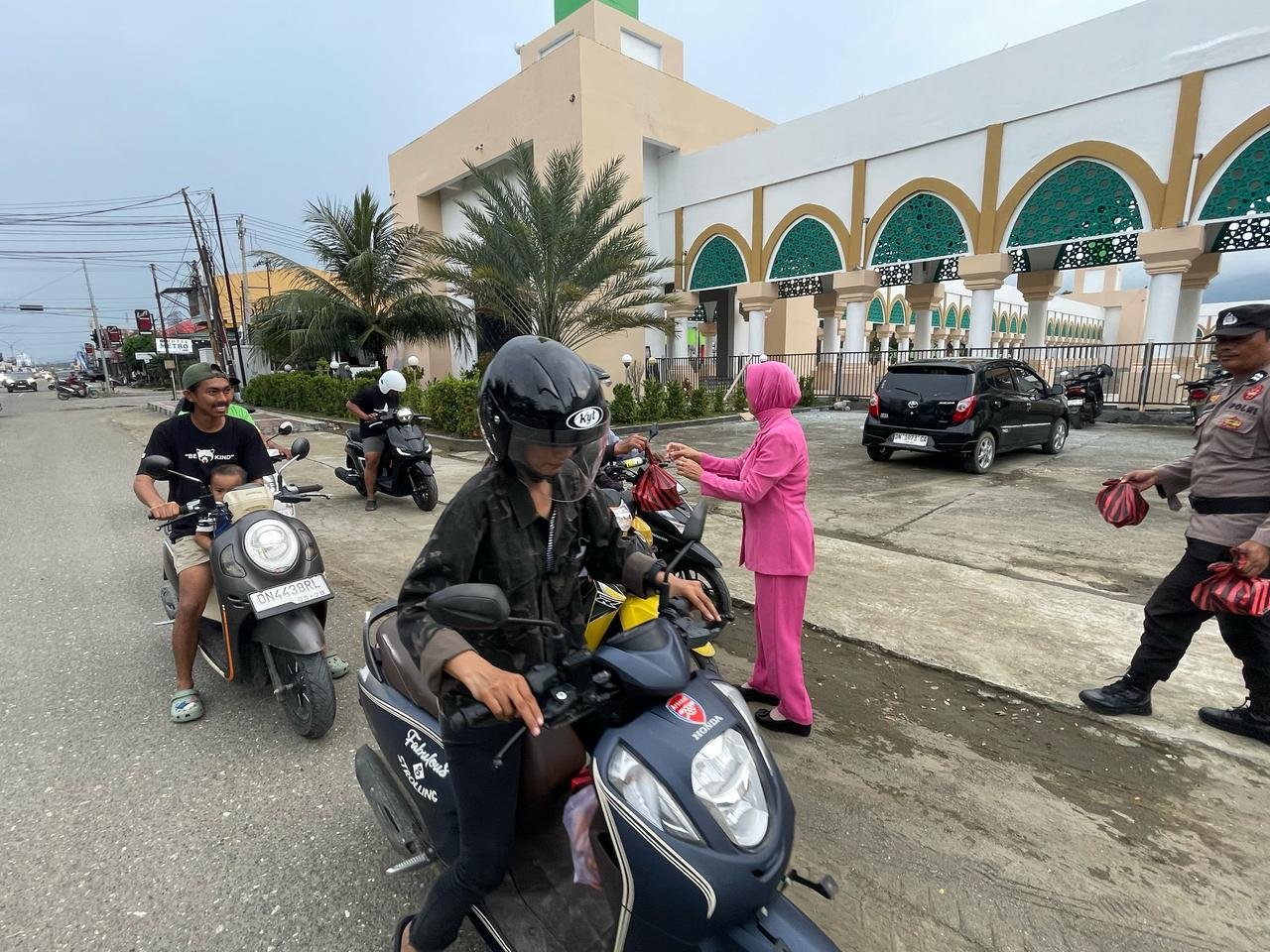 Selain membagikan makanan berbuka puasa, petugas juga mengajak masyarakat untuk selalu tertib dalam berlalu lintas serta menjaga keamanan dan ketertiban di wilayah Morowali.