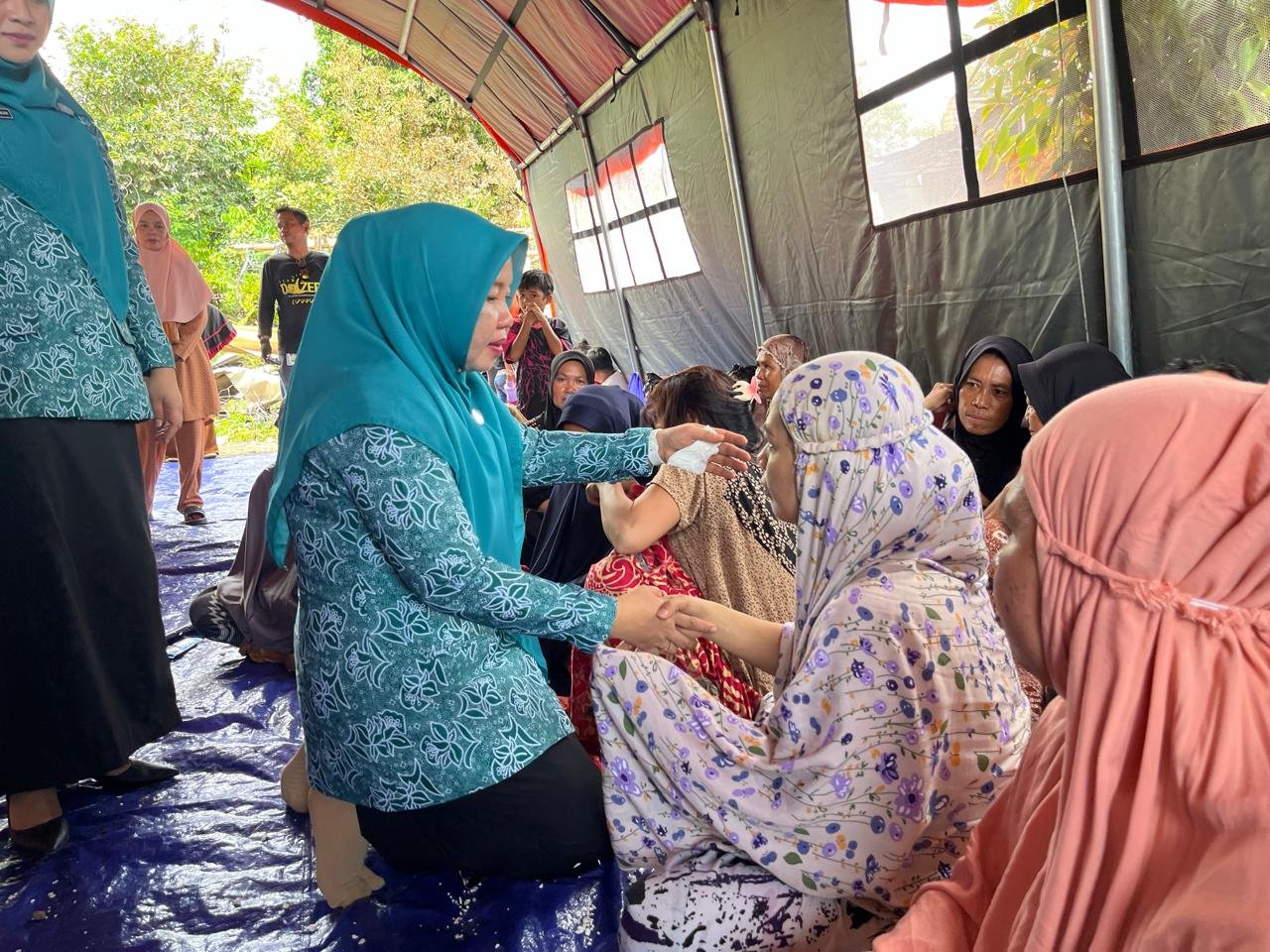 Selain memberikan dukungan moral, Ketua TP PKK Luwu, Hj Kurnia Patahudding, juga menyalurkan bantuan berupa kebutuhan bahan pokok.