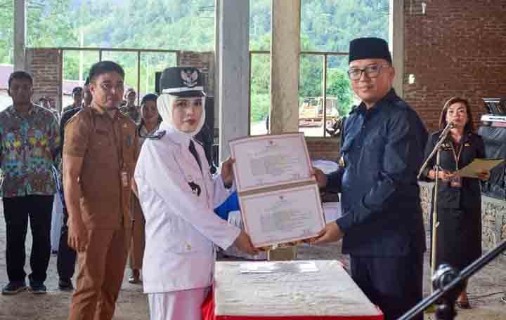 MORUT, TEKAPE.co – Bupati Morowali Utara (Morut), Dr dr Delis Julkarson Hehi MARS, melantik Frida Christiana Tagoe sebagai Kepala Desa (Kades) Tambayoli, Kecamatan Soyojaya, Kabupaten Morut, di gedung pertemuan Tambayoli, Selasa, 9 Mei 2023 sore.