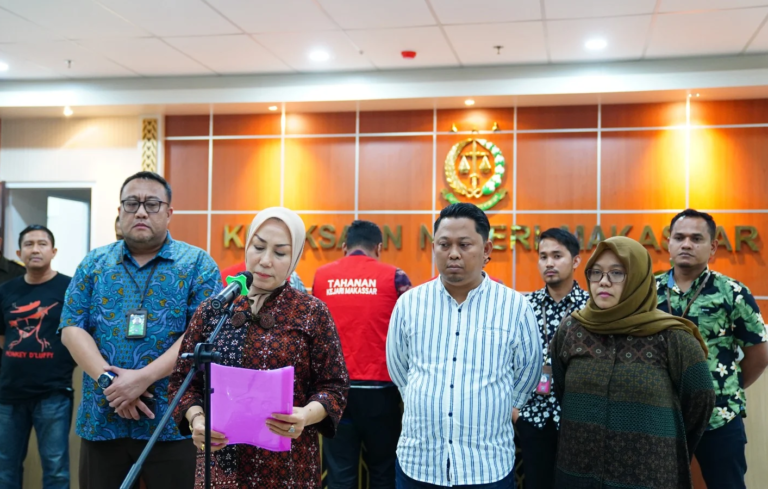 Kejaksaan Negeri (Kejari) Makasar merilis tersangka kasus dugaan korupsi pembebasan lahan untuk pembangunan industri persampahan atau tempat pengolahan sampah berbasis energi (Waste to Energy) di Kelurahan Tamalanrea Jaya, Kecamatan Tamalanrea, Makassar. (Dok: Kejari Makassar)