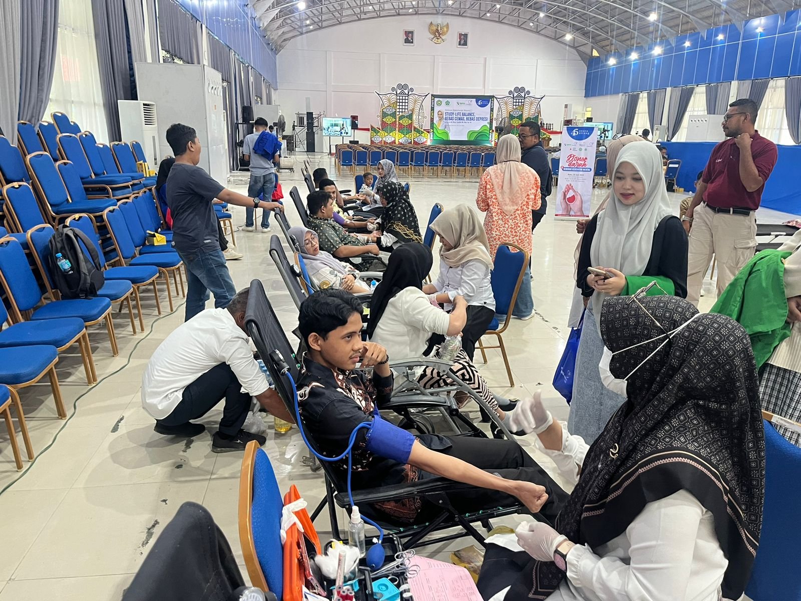Kegiatan tersebut melibatkan mahasiswa, dosen, dan tenaga kependidikan dari Unsam dan IAIN Langsa, serta didukung oleh Palang Merah Indonesia (PMI) Kota Langsa.