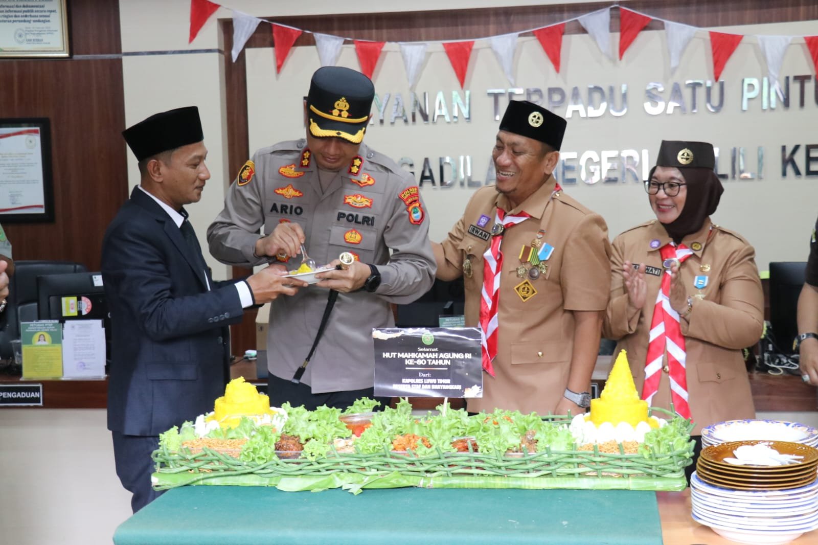 MALILI, TEKAPE.coSuasana penuh keakraban mewarnai acara syukuran Hari Jadi Mahkamah Agung (MA) RI ke-80 yang digelar di Kantor Pengadilan Negeri (PN) Malili, Desa Puncak Indah, Selasa (19/08/2025).