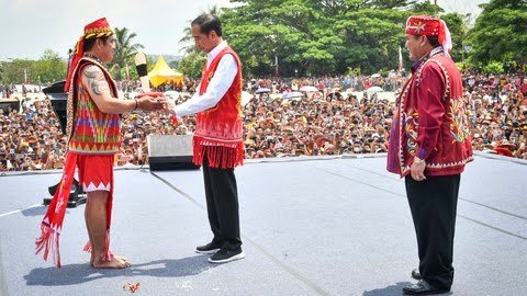 JAKARTA, TEKAPE.co – Presiden Joko Widodo (Jokowi) mendapatkan gelar adat daru suku Dayak saat berkunjug ke Kutai Barat, Kalimantan Timur.
