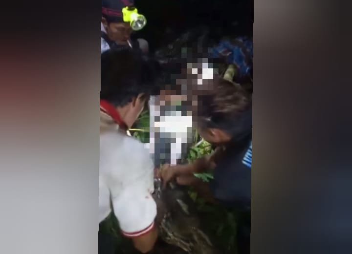 Dalam video, terlihat warga membelah perut ular piton sepanjang 8 meter demi mengevakuasi korban.